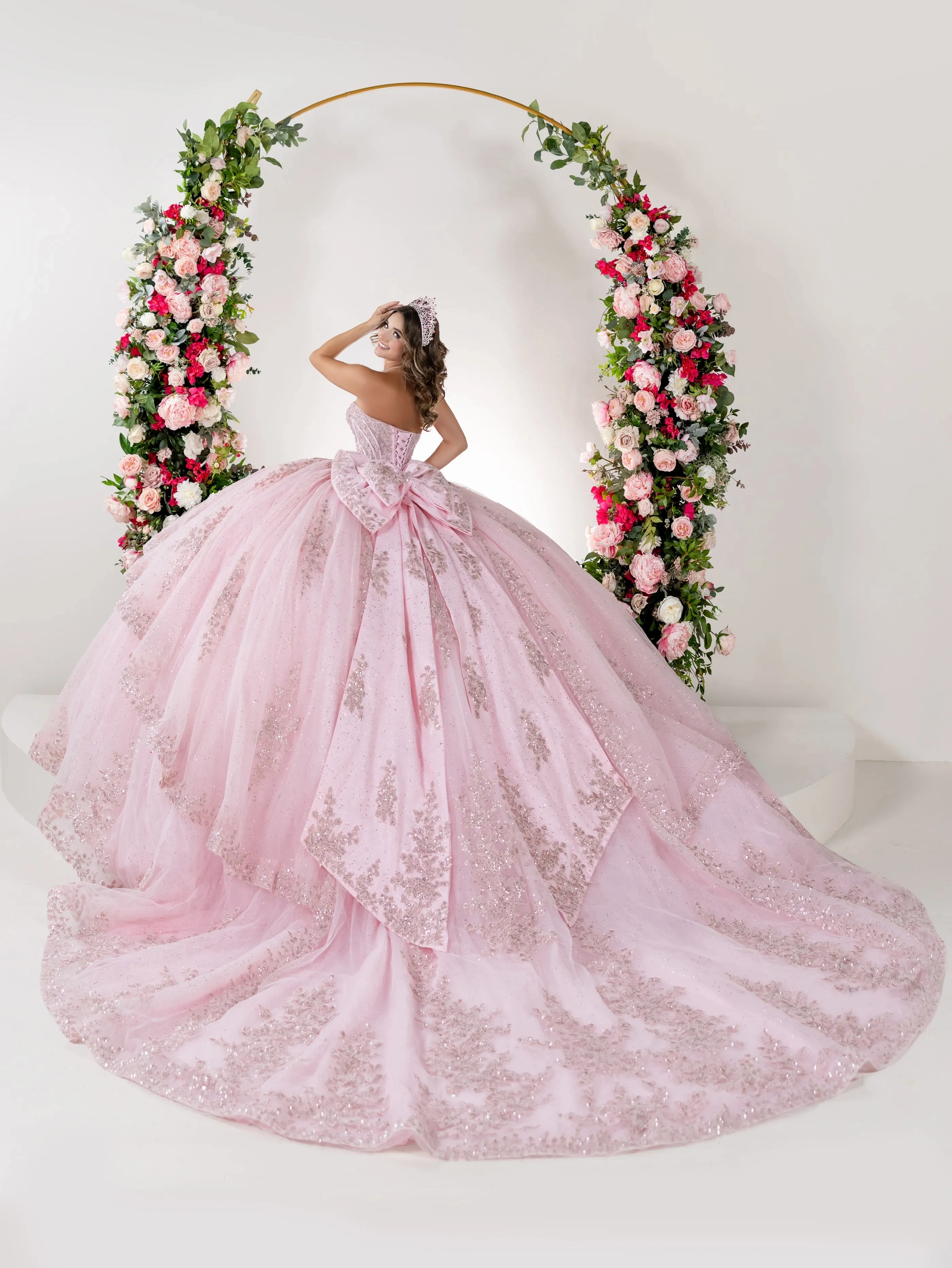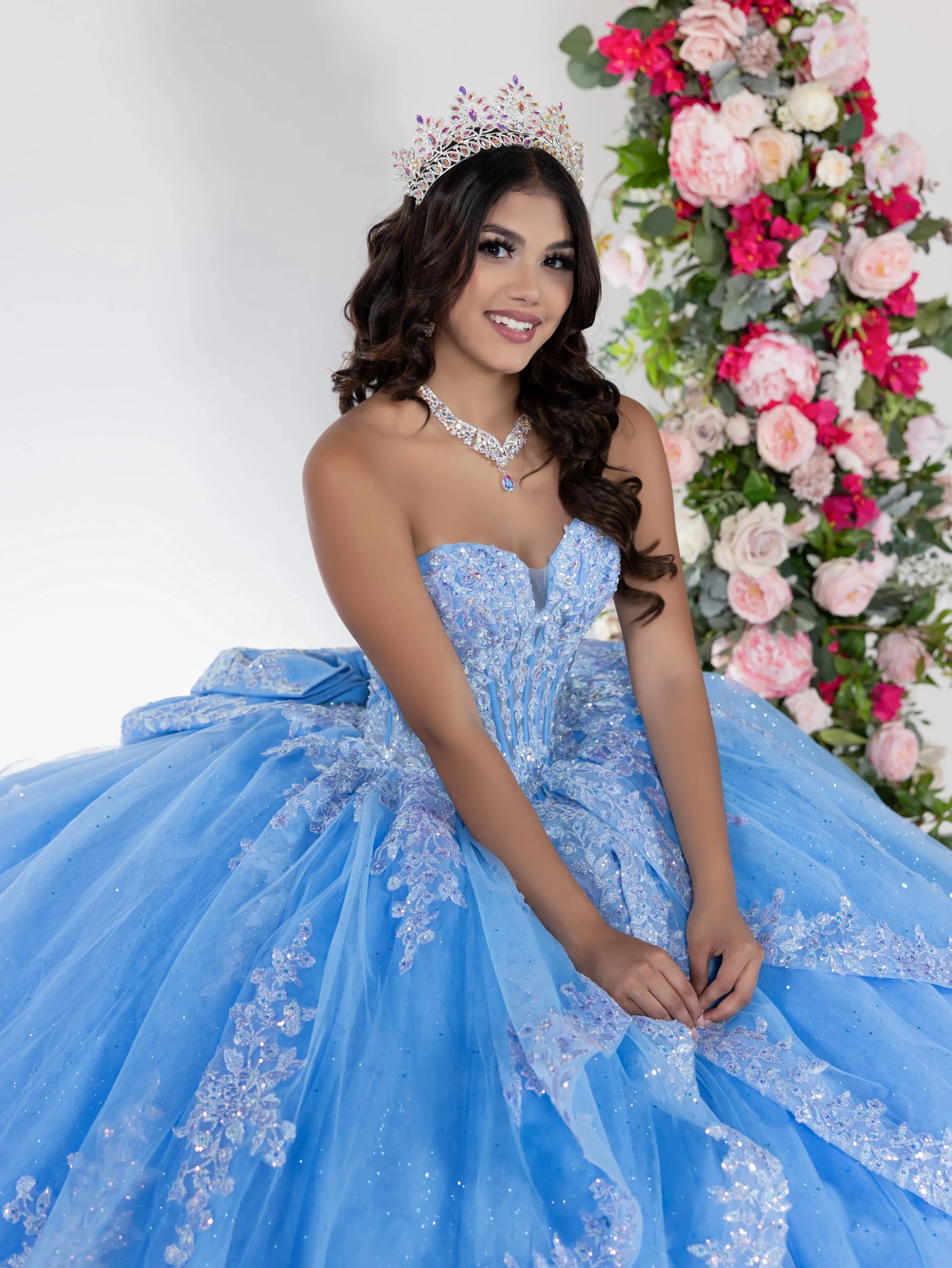 Off-the-shoulder, sweetheart neckline on this romantic multiple cascading layers of voluminous tulle skirt with embroidery lace edging, bodice boning provide a perfect fit, tier skirt carries to back of this semi-cathedral train.